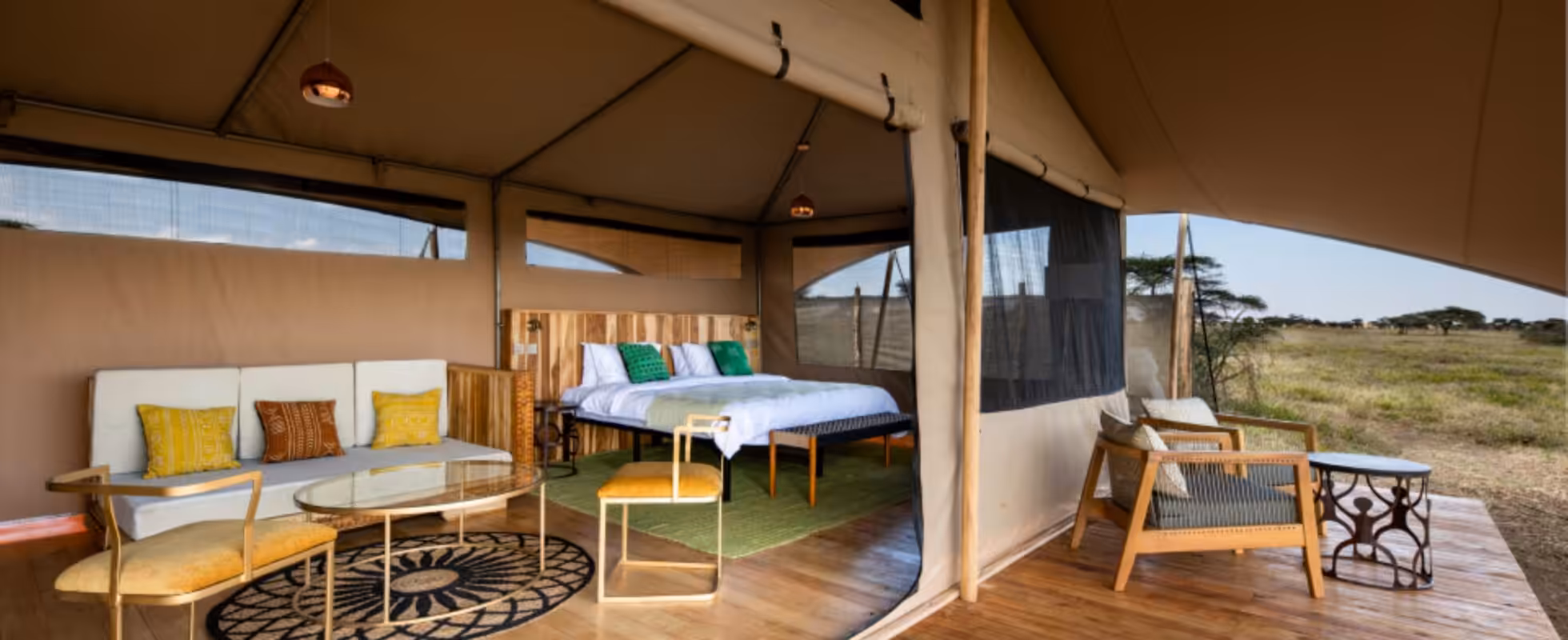 Lolkisale Tarangire Camp by Top Guides es un refugio tranquilo y lujoso en el Parque Nacional Tarangire. El campamento cuenta con ocho tiendas de safari personalizadas, elevadas sobre plataformas de madera. Podrás observar, desde tu porche privado, a los animales deambulando en busca de agua en los humedales. La decoración de cada rincón está cuidadosamente pensada, incluyendo tonos y texturas naturales. Las habitaciones cuentan con cómodas camas, justo el confort que necesitas después de un largo día de safari. Las zonas comunes incluyen una tienda comedor y una sala de estar donde podrás disfrutar de deliciosas comidas, charlar con otros huéspedes y tomar algo refrescante del bar para culminar el día. En plena naturaleza africana, no se necesita mucho más para vivir una experiencia inolvidable.