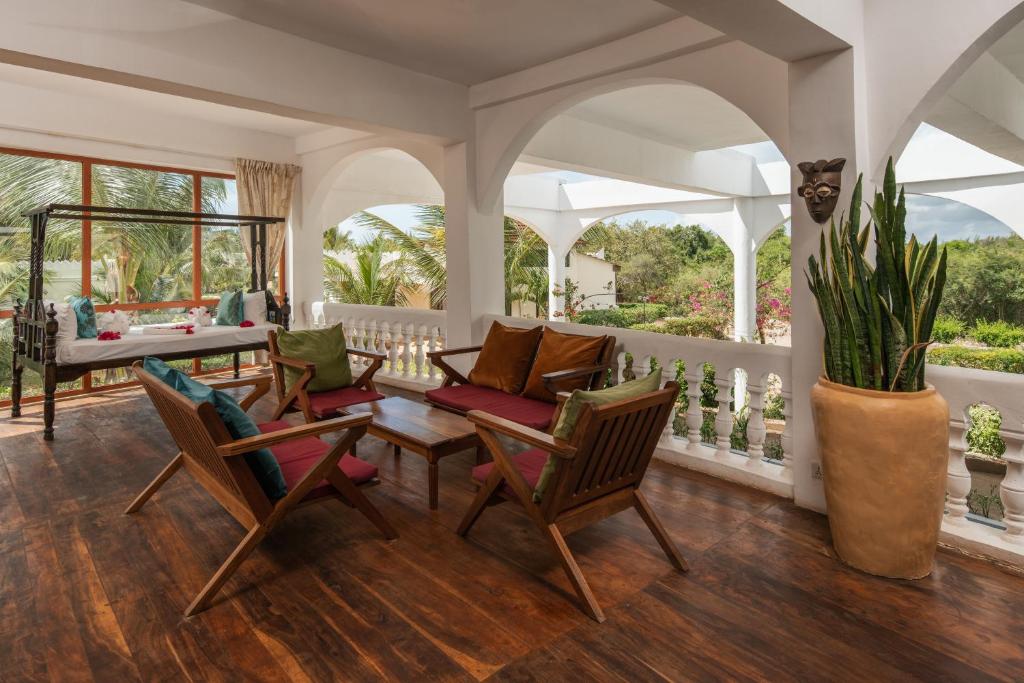 Entre las opciones de alojamiento, hay varios tipos de habitaciones y una villa privada con piscina infinita, terraza en la azotea y un spa privado. Las habitaciones y villas están decoradas al más puro estilo zanzibarí, con muebles de madera hechos a mano por los artesanos de la zona. Hay varias bicicletas a disposición de los huéspedes para que puedan pasear por los senderos de coral y descubrir la belleza natural de la isla de una forma diferente. Como zonas comunes, hay una piscina impresionante con visas al mar, bares y restaurantes. Si viajas con niños, entonces debes llevarlos al club infantil Rafiki, ¡se lo pasarán en grande! En definitiva, es el alojamiento perfecto para desconectar.