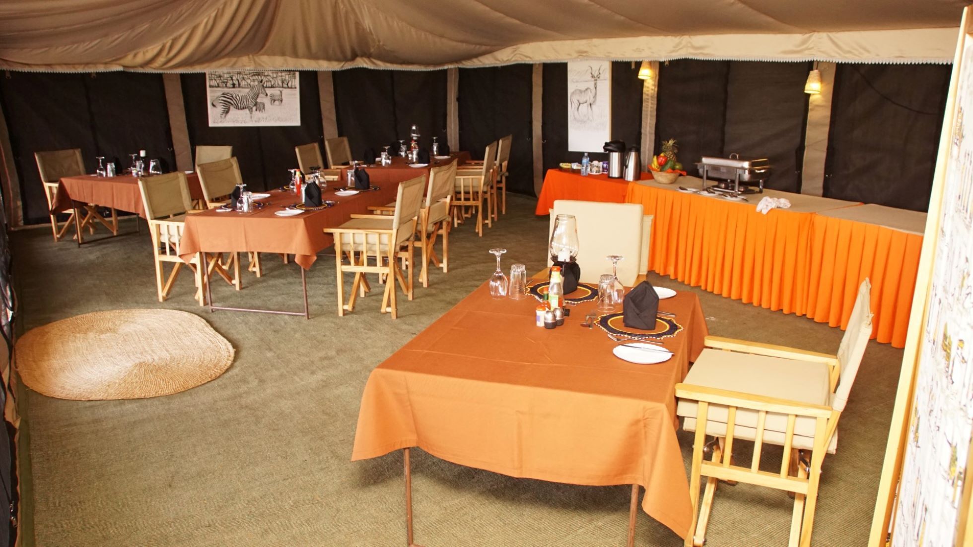 En su tienda-comedor podrás desayunar, almorzar y cenar los platos preparados por su restaurante. En su menú encontrarás platos internacionales y africanos, aunque también se adaptarán a todas tus necesidades dietéticas y nutricionales. Asimismo, existe la posibilidad de pedir un desayuno o una cena en plena naturaleza, con vistas a la sabana y rodeado de todo tipo de animales. El campamento utiliza energía solar y, justo al lado del comedor, hay una sala de estar y un bar con enchufes para que puedas cargar tus aparatos electrónicos. Después de cenar, te aconsejamos que te sientes junto a la crepitante hoguera que prepara el personal del alojamiento todas las noches. Es el momento perfecto para compartir tus historias y anécdotas del día con el resto de huéspedes.