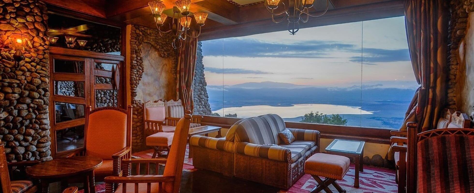 Enclavado en lo alto de las llanuras, en el borde escarpado del cráter, entre piedras de río y vides autóctonas, se encuentra el Ngorongoro Serena Safari Lodge, un alojamiento con unas vistas espléndidas del emblemático cráter de Ngorongoro. Cuenta con 75 habitaciones que bordean el cráter, decoradas con un estilo rústico y exuberante, y con cuartos de baño privados, camas cómodas y balcones rodeados por las rocas del paisaje. En el comedor, encuentras una chimenea para hacer frente a las noches más frías, paredes con pinturas rupestres prehistóricas y abundante comida elaborada por el personal del alojamiento. Pese a su aspecto antiguo, dispone de wifi gratuito, televisión y un spa para que puedas recargar las pilas como es debido.