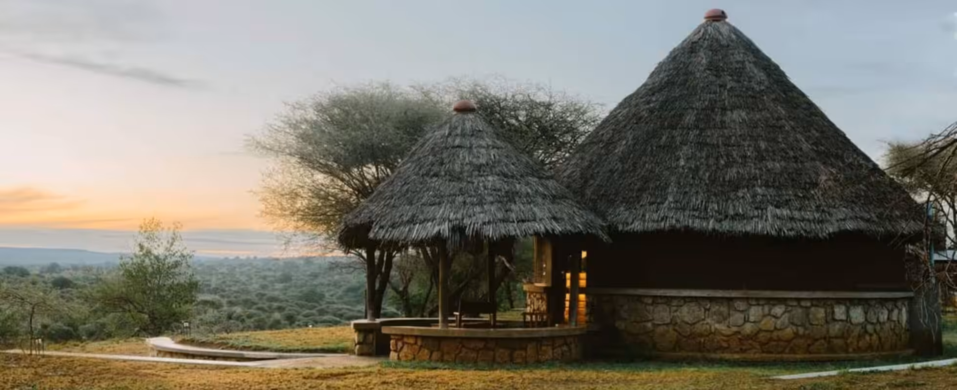 Tarangire Safari Lodge está en la zona norte del Parque Nacional Tarangire y presume de unas vistas maravillosas sobre el parque. Puedes alojarte en tiendas de safari con techo de paja y ventanas con mosquitera; un lugar cómodo para descansar después del safari. Si necesitas más espacio, elige un bungaló circular inspirado en los bomas masáis. Tanto las tiendas como los bungalós tienen baño privado, ducha con agua caliente calentada con energía solar y electricidad 24 horas. Aquí lo mejor es que el paisaje acompaña en todo momento: en el porche, la piscina, el comedor al aire libre o la zona de bar y salón.