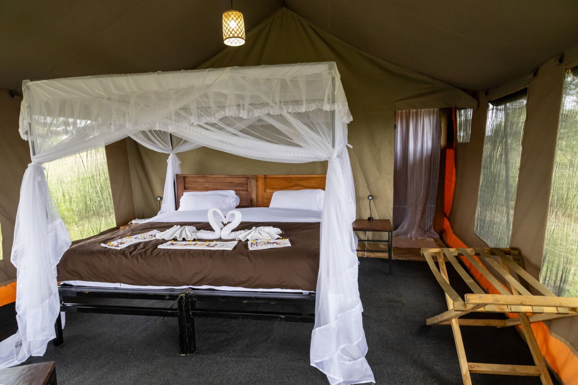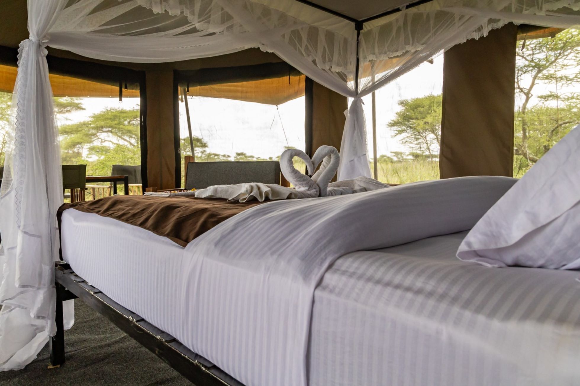 El Canopy Migration Camp es un campamento móvil que cambia de ubicación a lo largo del año siguiendo la Gran Migración. Desde mediados de diciembre hasta marzo, se encuentra en la zona de Ndutu, al sur del Serengueti, una ubicación ideal para presenciar la Gran Migración de ñus y cebras durante la época en que las hordas se reúnen para dar a luz a sus crías. El campamento cuenta con 11 espaciosas tiendas de lona que funcionan con energía solar y disponen de un dormitorio acogedor, y un cuarto de baño y un porche privados. Ve al restaurante para deleitarte con sus sabrosas comidas recién hechas y reúnete alrededor de la hoguera por la noche para compartir anécdotas con el resto de huéspedes.