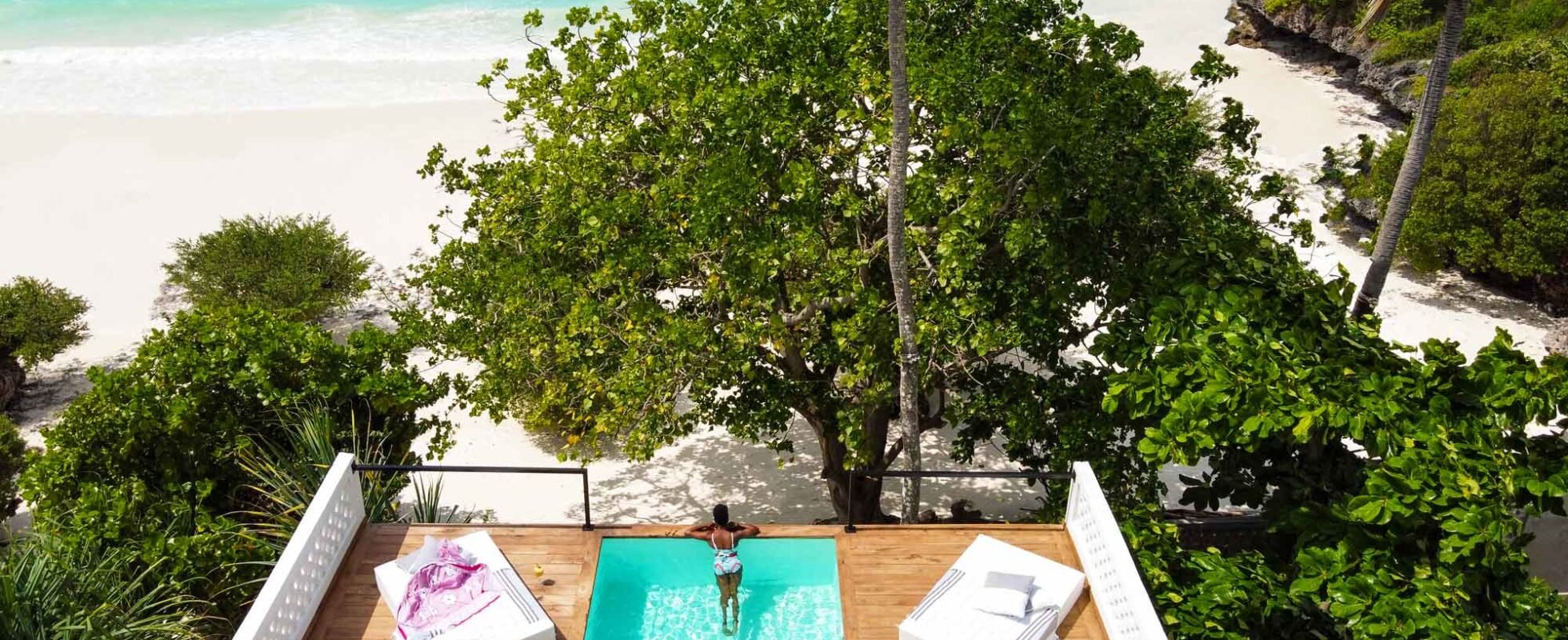 Upendo Beach está situado en Michamvi, en la costa este de Zanzíbar, en una de las playas más bellas y aisladas de la isla. Este hotel boutique consta de dos villas solo para adultos, con capacidad para dos personas cada una, y una villa familiar de seis dormitorios con tres suites que pueden alquilarse por separado. Las villas más pequeñas cuentan con su propia piscina en la azotea y una gran terraza con vistas al mar, así como con un tramo privado de playa. Además, la decoración de su interior es romántica y luminosa, con una silla colgante, varios sofás grandes y tumbonas. La villa familiar, por su parte, es igual de bonita, con una piscina amplia, sofás repartidos alrededor de la casa y la terraza, y un balcón de madera que se extiende a lo largo de la casa con vistas al mar. Tanto las pequeñas como la familiar tienen su propio mayordomo y un restaurante a su disposición con vistas al famoso restaurante The Rock Restaurant, en el que se sirven todo tipo de platos deliciosos.