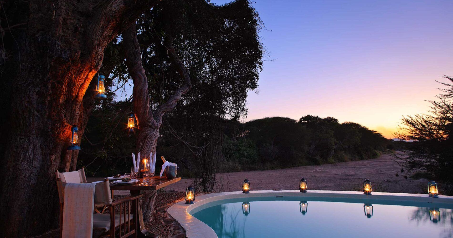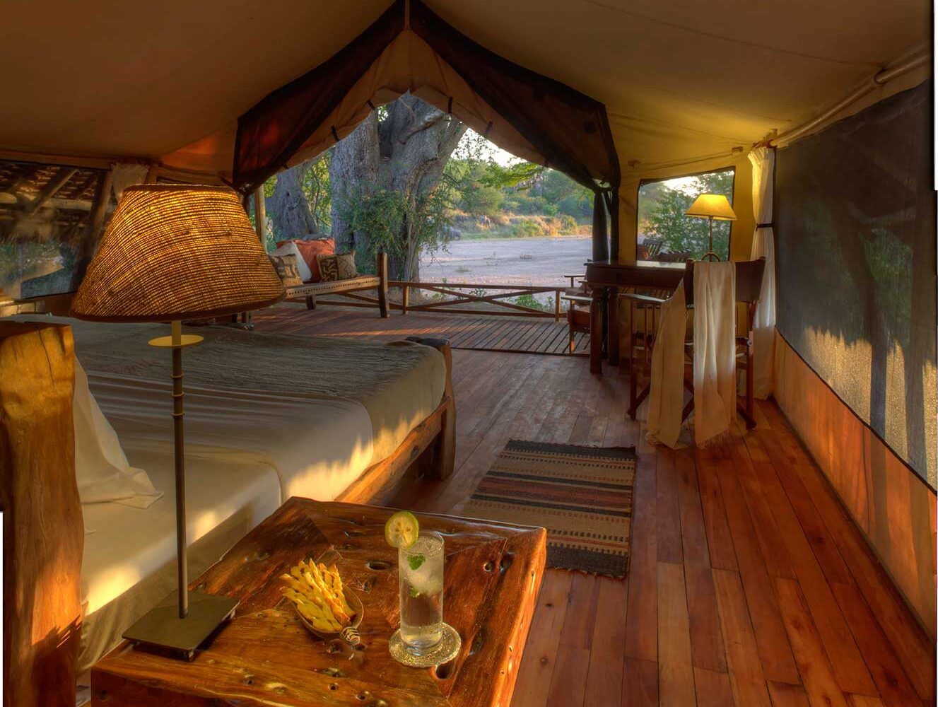 El Laba Jongomero Camp se encuentra en una zona remota del Parque Nacional Ruaha, cerca del río estacional Jongomero, un afluente del majestuoso río Ruaha. Este lujoso campamento permanente, accesible únicamente en avioneta, es un refugio exclusivo y privado que ofrece un servicio de primera categoría y atención personalizada en todo momento. Sus ocho amplias suites, ubicadas bajo majestuosos árboles frondosos, son acogedoras y están cuidadosamente equipadas. Cada suite, construida sobre plataformas de madera, cuenta con un baño privado, muebles elaborados con madera reciclada de dhows tradicionales, y una terraza privada con tumbona para disfrutar del sol durante el día, todo ello bajo techos de paja que añaden un toque rústico y encantador. La decoración te transporta a la época de los primeros exploradores, pero con un aire de lujo moderno. Mantente en forma en el gimnasio, refréscate en la piscina o disfruta de una deliciosa comida preparada por un chef local, todo ello en un entorno de decoración sencilla pero acogedora, con impresionantes vistas al paisaje y la fauna circundantes.